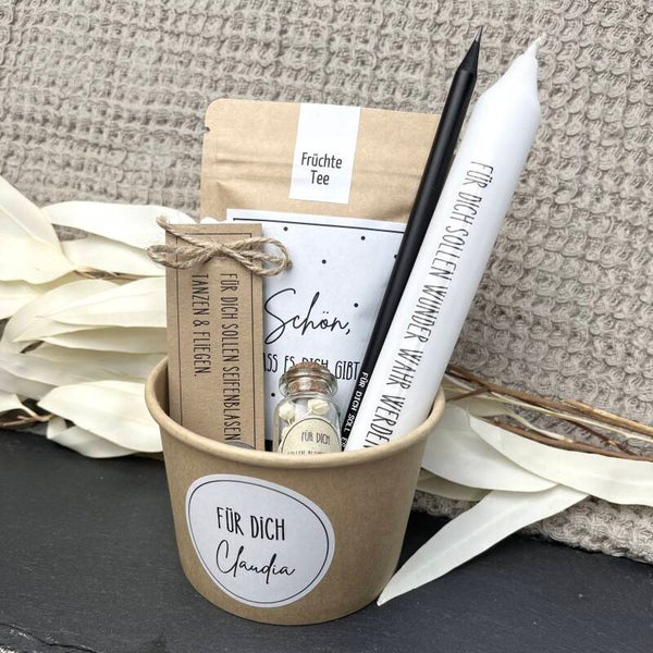 Überrasche deinen besonderen Menschen mit diesem personalisierten und mit viel Liebe handgemachten Geschenkset.