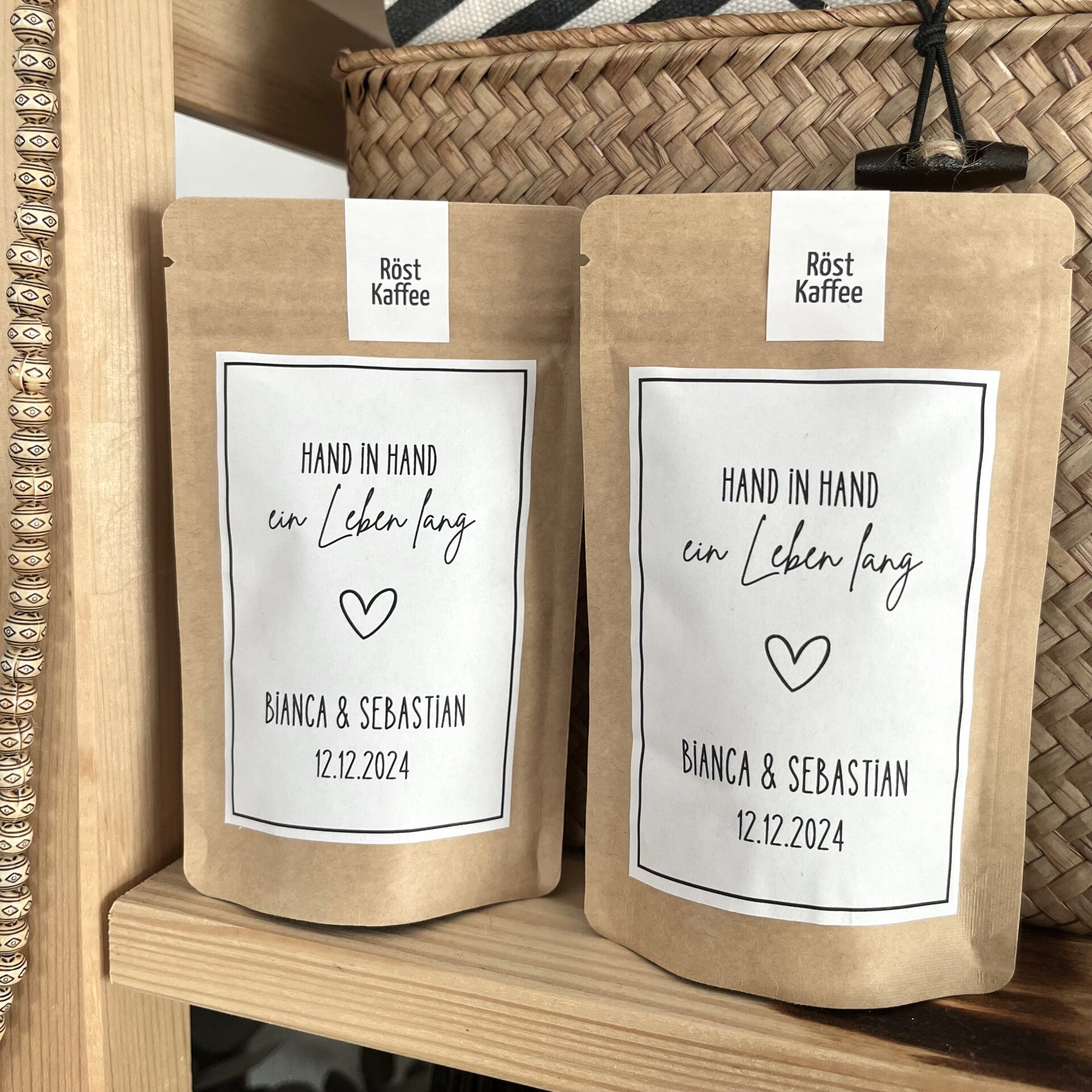 - zwei Getränk mit Etikett: „Hand in Hand ein Leben lang" und