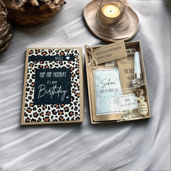 Überrasche deinen besonderen Menschen zum Geburtstag mit diesem personalisierten und mit viel Liebe handgemachten Geschenkset im zauberhaften Leo Design.