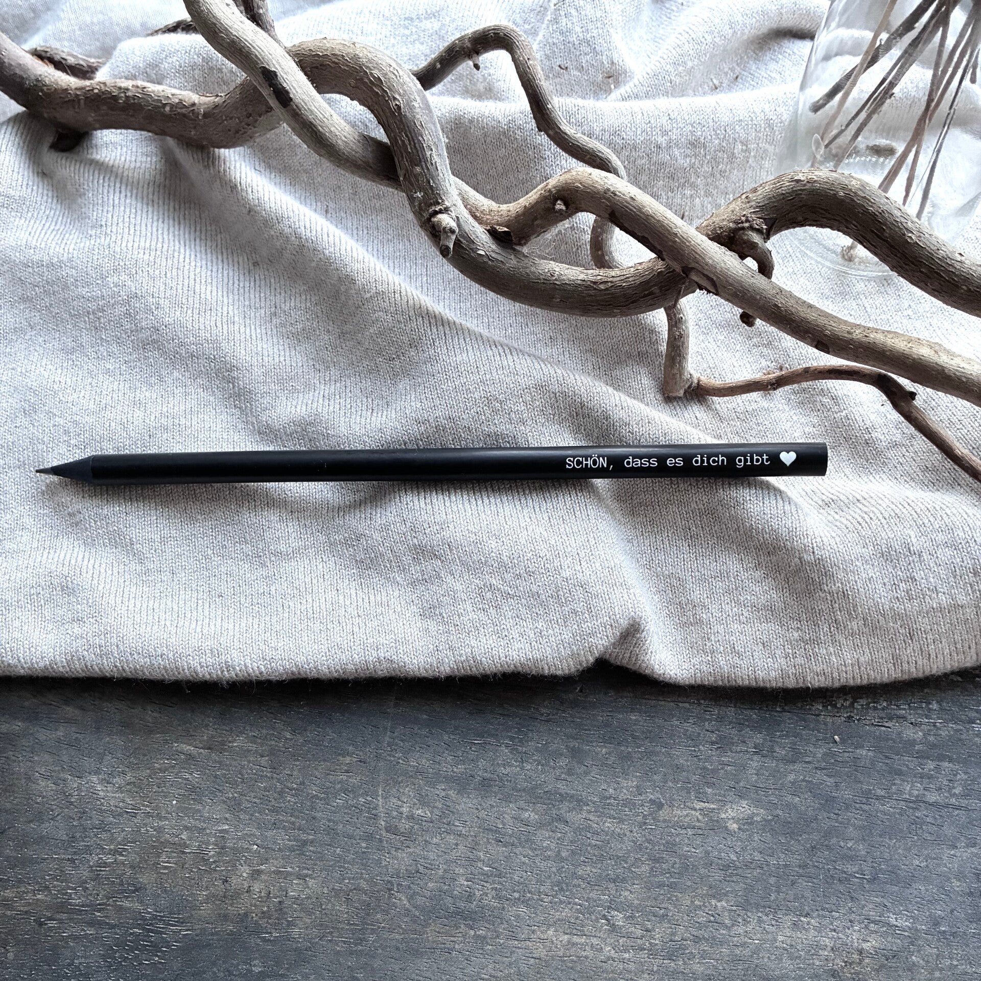 Schwarzer Bleistift mit Spruch & Herz - Schön, dass es dich gibt